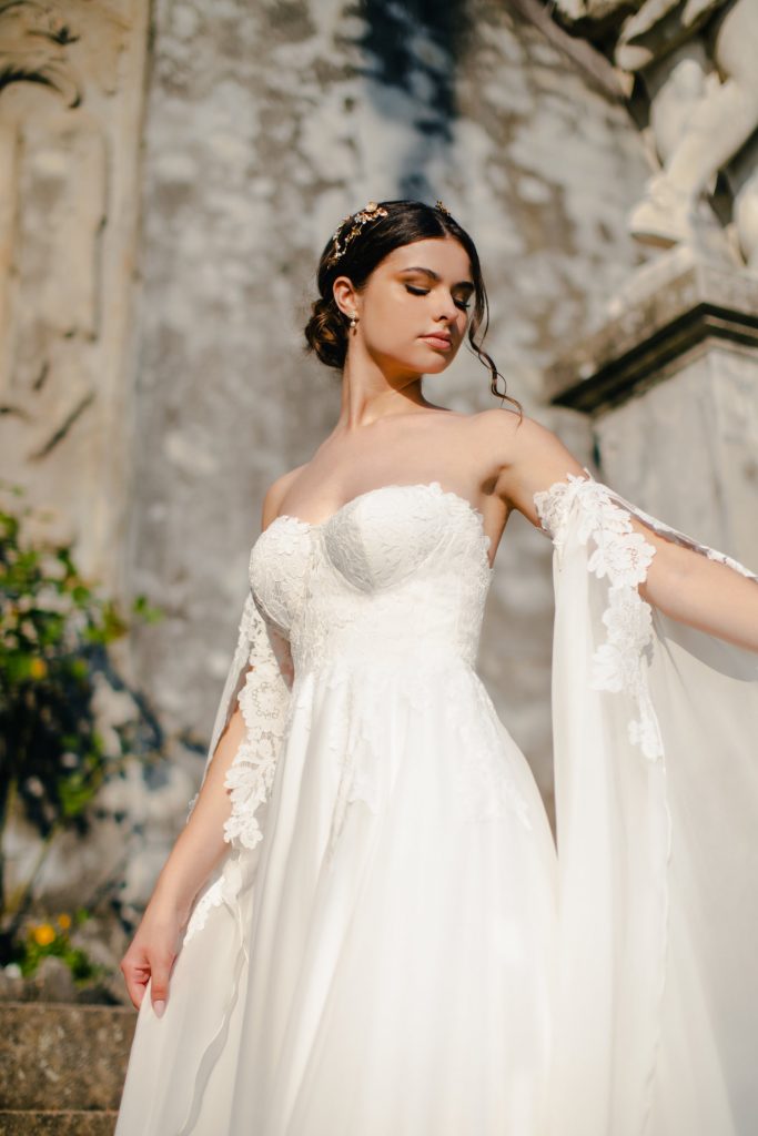 Ricorda che l’abito da sposa verrà realizzato a mano su misura della cliente, la collezione è una fonte d’ ispirazione per la creazione del tuo modello unico ed esclusivo.